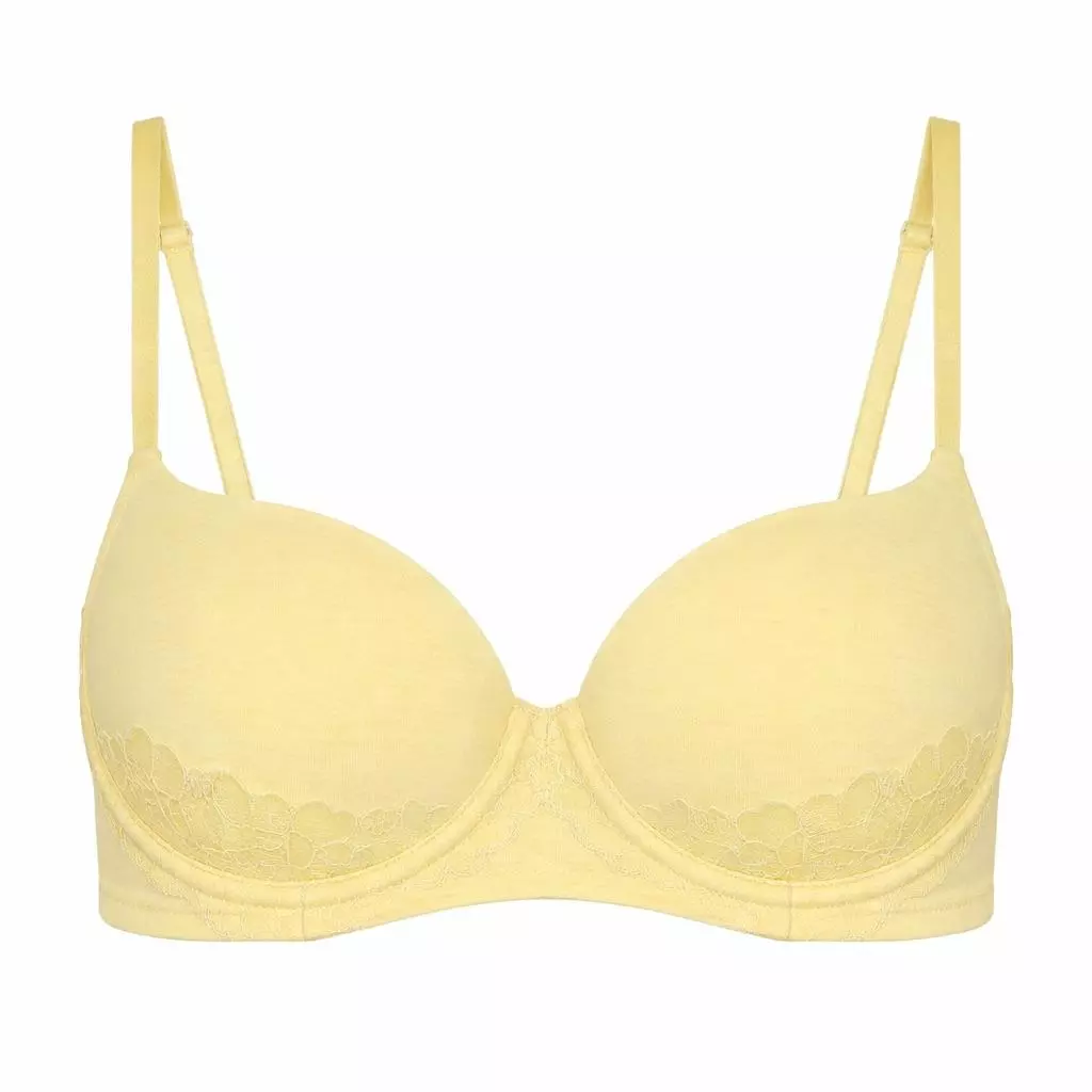 Плотная чашка бра на кости прекрасно поддерживает и направляет грудь к центру. Абсолютная гладкость достигается за счет расположения кружева по низу чашек.
