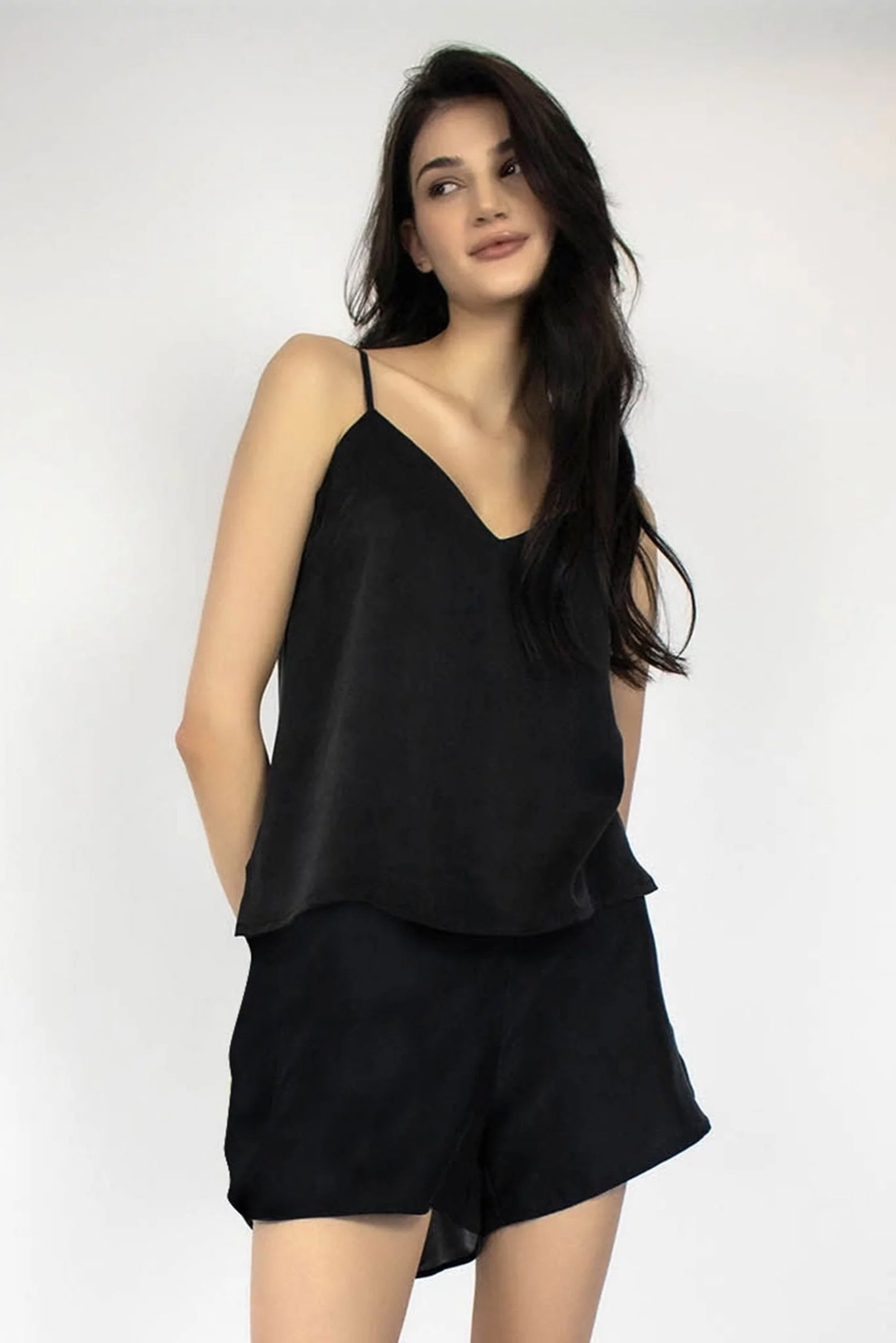 Черные Шелковые Шорты - в сочетании с Топом или Рубашкой созданы в эстетике In & Out. Дополнив Кимоно, сэт приобретает элегантный лаунж образ.