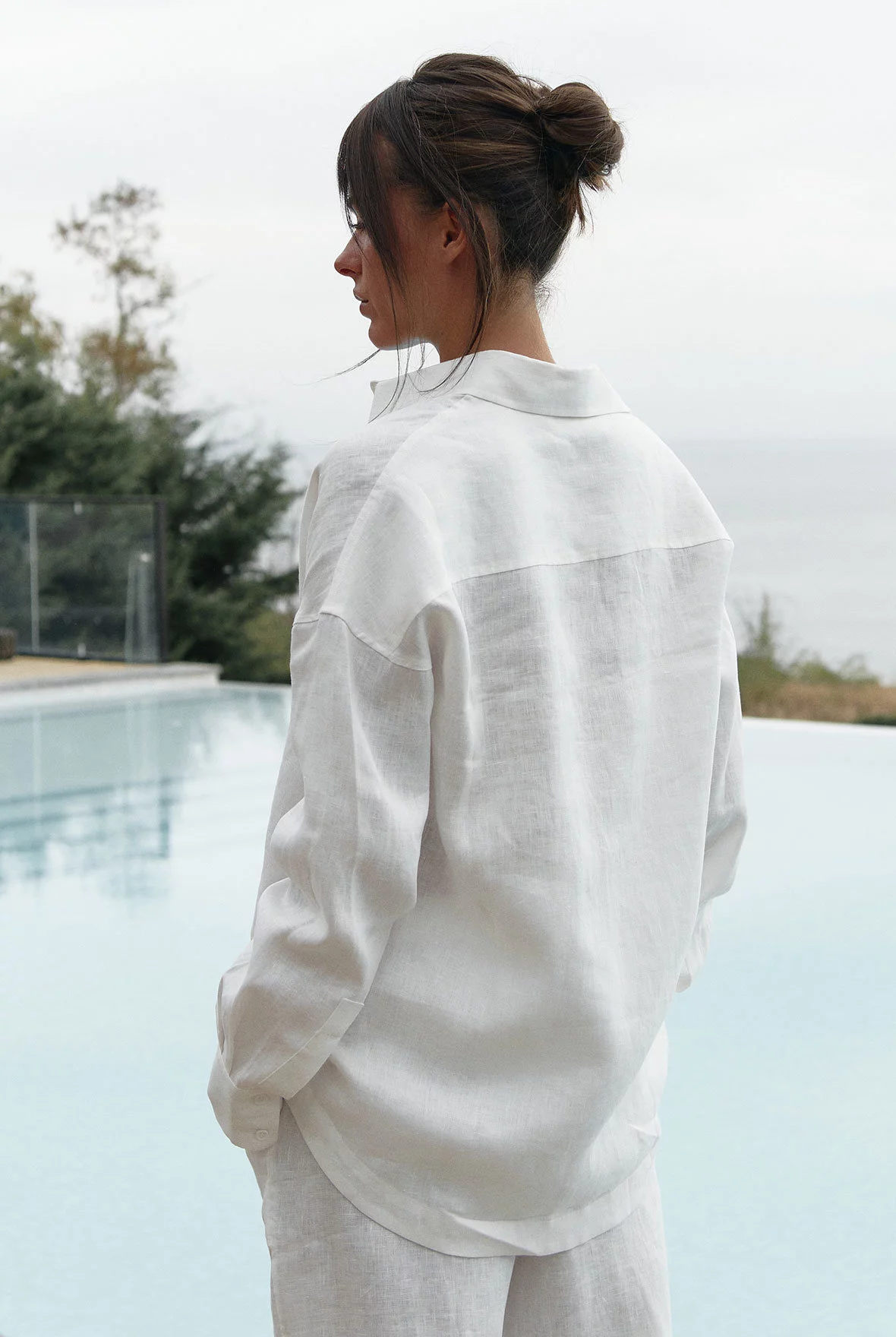 Унисекс рубашка из смягчённого льна средней плотности (100% лен) с расслабленным силуэтом, классическим воротником и длинными рукавами. Универсальная вещь — от утренних прогулок до ужина на открытом воздухе.