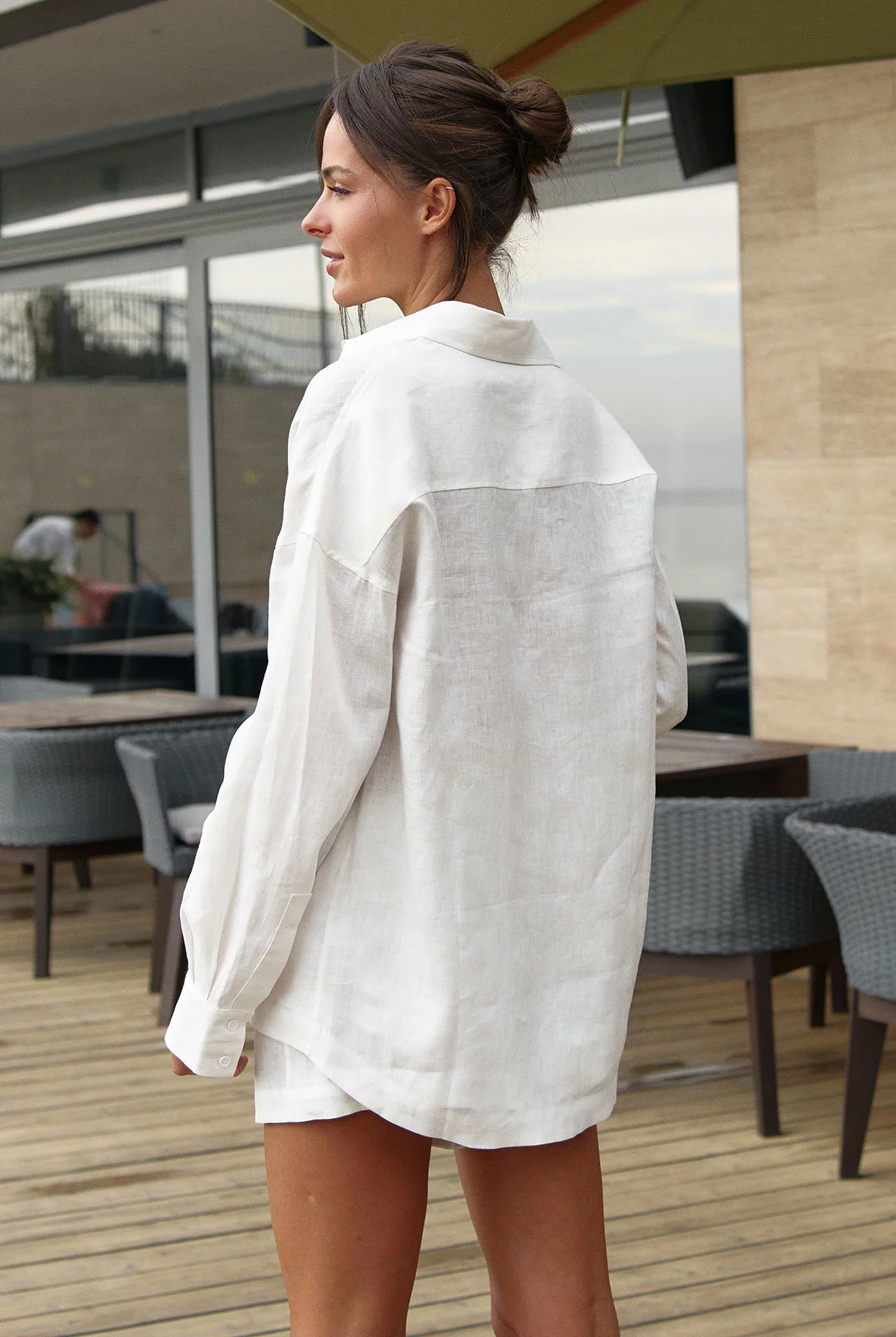 Белый цвет добавляет образу свежести и подчёркивает естественную фактуру ткани.