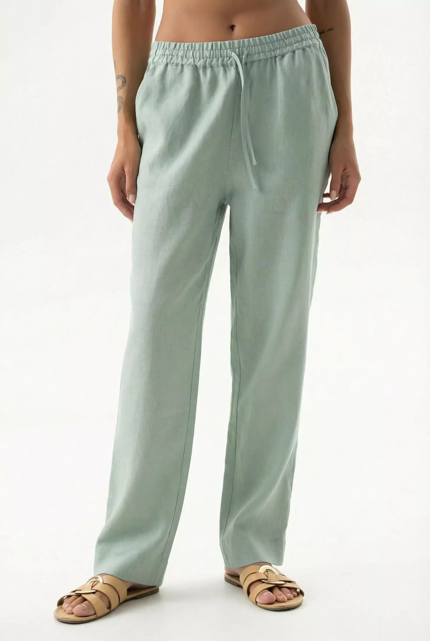 Унисекс брюки из дышащего льна средней плотности (100% лен) — фаворит летнего гардероба. Эластичный пояс и боковые карманы обеспечивают комфорт и практичность в повседневной носке.