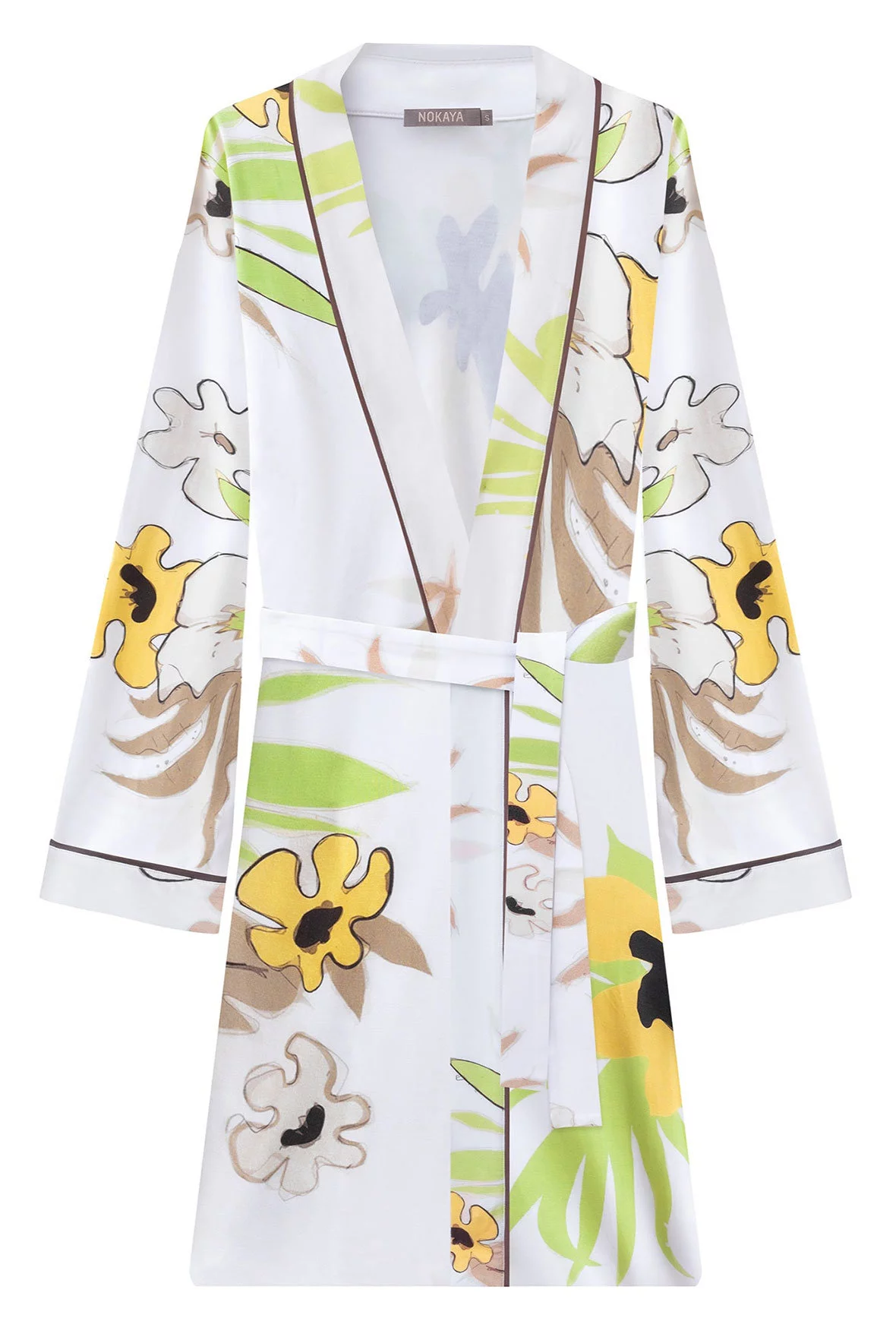 Укутайтесь в рсокшно мягкий халат из натурального бамбука, элегантно ниспадающего. Глубокие карманы добавляют практичности. Котрастный кант придает образу завершенность.