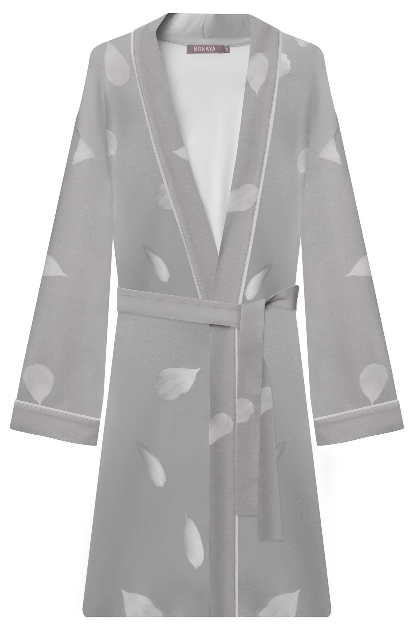 Укутайтесь в рсокшно мягкий халат из натурального бамбука, элегантно ниспадающего. Глубокие карманы добавляют практичности. Котрастный кант придает образу завершенность.